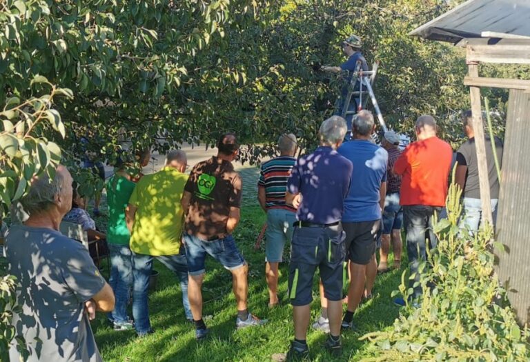 Unter Anleitung von Fachberater Adrian Klose standen Schnitttechniken im Vordergrund, die den Baum gesund erhalten, die Fruchtqualität erhöhen und die Wurzel- und Blattbalance fördern. Es wurden Baumpflegearbeiten demonstriert – von der richtigen Auswuchs- und Leistungsverzweigung bis hin zum Verhindern von Feuchtigkeitsschäden durch gezielte Öffnung des Kronenraums. Die Atmosphäre war geprägt von offener Fragenkultur und praxisnahen Demonstrationen.